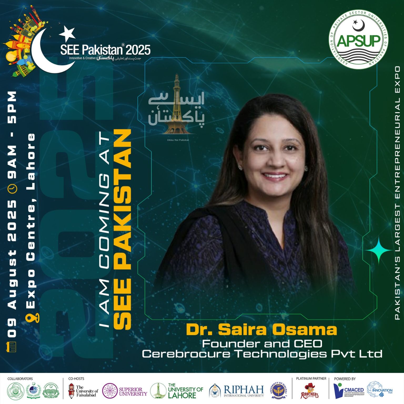 Dr. Saira Osama, Founder & CEO of Cerebrocure Technologies, was honored with a Special Guest invitation at SEE Pakistan, the country’s premier entrepreneurship and innovation showcase.