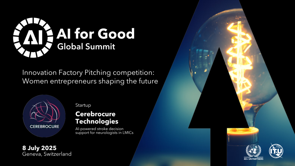 Cerebrocure Technologies was honored to be selected as one of the top three Finalists in the Women Entrepreneurs Pitching Competition at the AI for Good Global Summit 2025 in Geneva, organized by the United Nations and ITU.